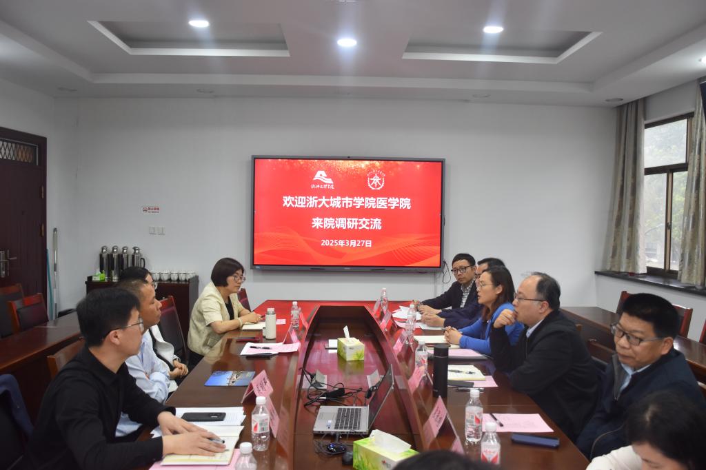 3月27日,浙大城市学院开云官方网页版执行院长曾玲晖、副院长张大勇一行8人来学院调研交流。学院党委书记吴剑平、副院长金欣以及教研科、医教协同办公室和办公室相关负责人参加交流。