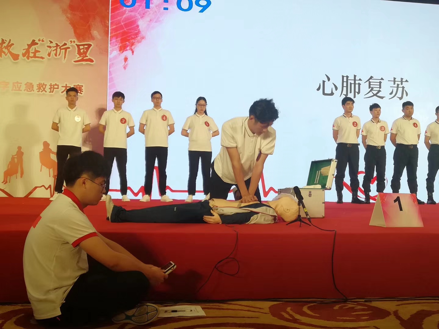 近年来,学校举办或组队参加救护技能大赛。先后举办七届应急救护技能大赛,全校各二级学院各选派5人组队参赛,围绕“心肺复苏+AED”“止血、包扎、固定、搬运”四项技能和救护理论考核等三个项目展开角逐,以赛促学强本领,以学促用展风采。学校先后四次组队参加浙江省红十字应急救护技能大赛,荣获团体综合一等奖1次、三等奖2次、优胜奖1次,荣获个人项目一等奖1人、二等奖5人、三等奖9人。先后2次组队参加绍兴市红十字现场救护技能竞赛均获团体第一名。