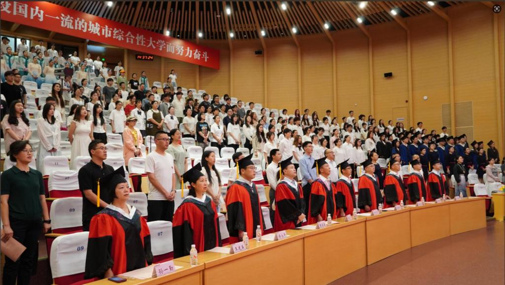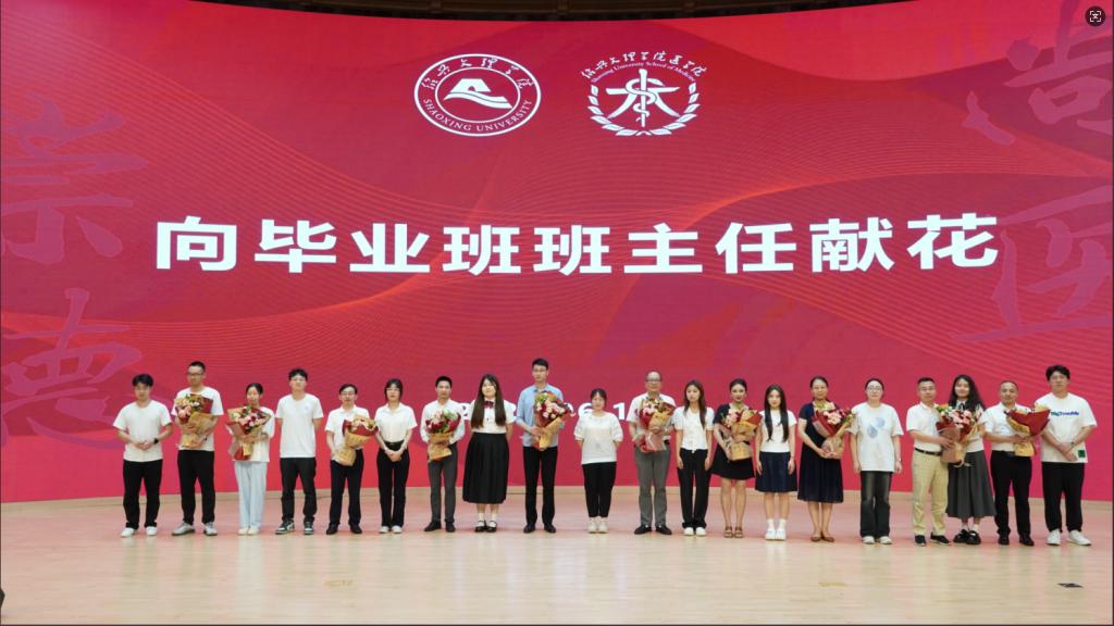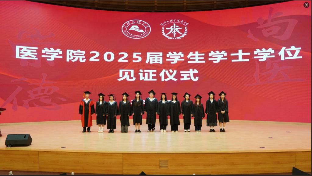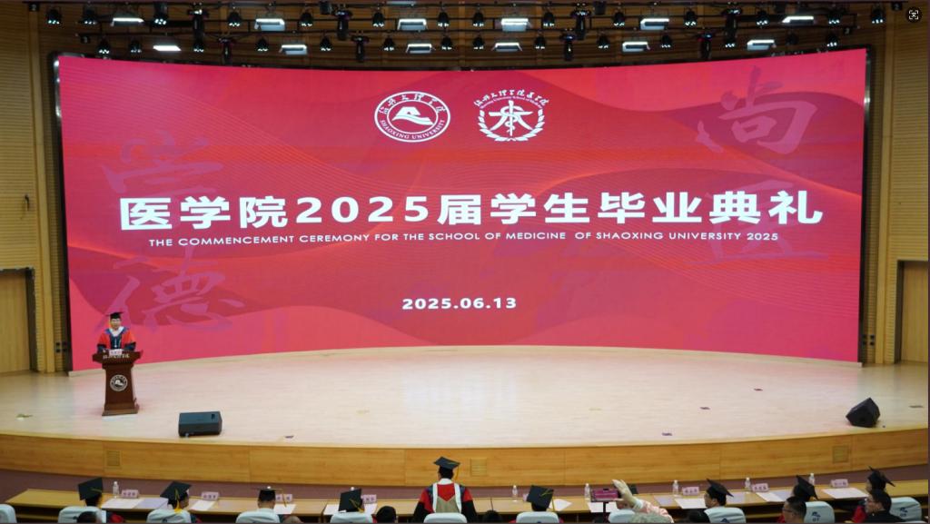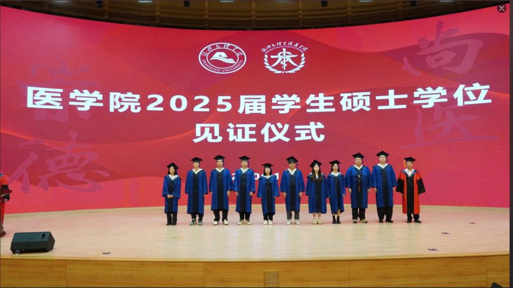 6月13日,学院在河西校区风则江大讲堂举行2025届学生毕业典礼。学院党委书记吴剑平、执行院长方兴亮、校附属第一医院副院长鲁葆春、校附属医院副院长傅永平、校附属医院副院长徐永根,学院副院长、校附属第二医院党委书记陈国华,校医学部副主任、学院副院长王建英,学院副院长杨国军、学院副院长孙一勤,以及学院各系部主任、各科室负责人、导师代表、全体辅导员、毕业班班主任和2025届全体毕业生和部分家长代表等参加。典礼由学院党委副书记林国旗主持。