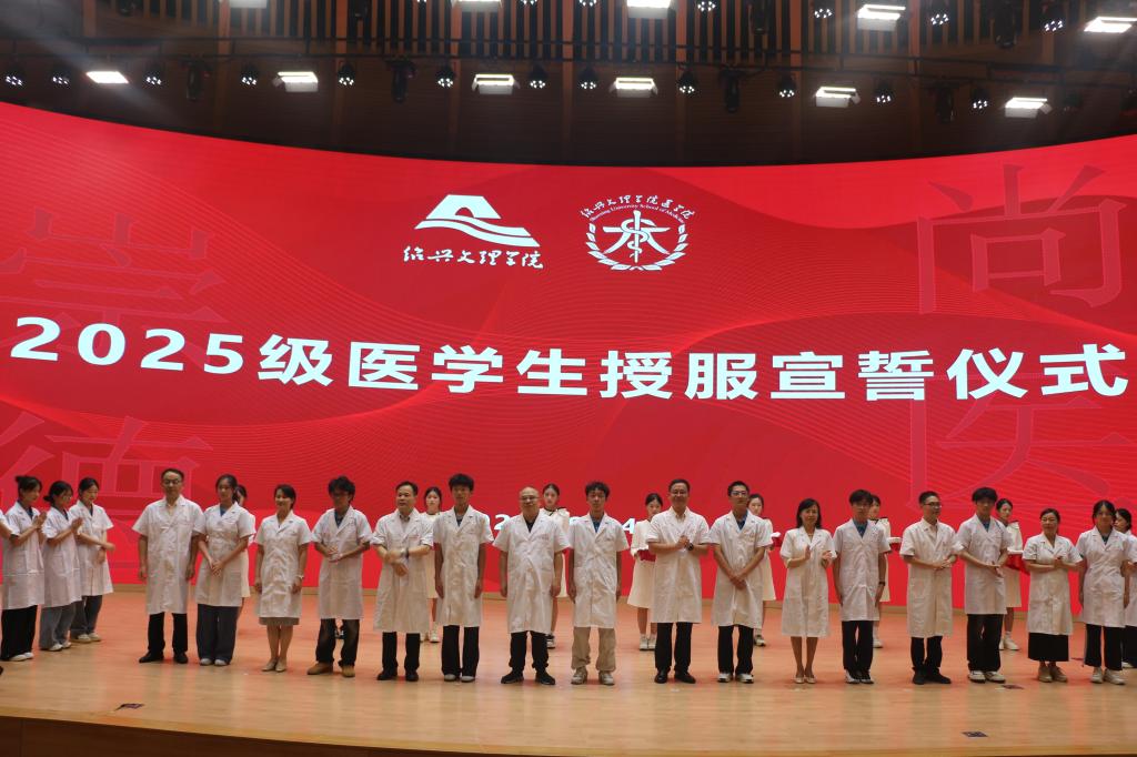 吴剑平致辞。他指出,当前国家推进中国式现代化,医疗健康事业机遇广阔,新生正处于从医学生成长为合格医生的关键阶段,需将课本知识与临床实践结合,在救治中锤炼医术与医德,践行 “健康所系、性命相托”的誓言。他还对新生提出三点期望:一是厚植家国情怀,将从医理想融入健康中国建设,以先辈校友为榜样,在医疗领域各岗位践行报国使命;二是夯实医学基础,牢记解剖、生理等课程的重要性,以裘法祖、姜泗长院士的箴言为指引,下苦功钻研求知,积累临床 “打硬仗”的底气;三是涵养医者仁心,始终铭记医学本质是人学,以共情与温暖对待患者及家属,坚守职业底线,力争成为技术过硬、心怀温度、受人尊敬的医者。最后,他祝愿新生在开云官方网页版学有所成、梦想成真,成长为兼具专业素养与人文温度的优秀医者。