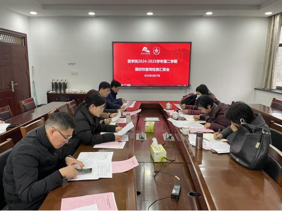 金欣围绕开学本科教学任务落实、教学设施检查、课表编制执行、教材准备情况、补(缓)考安排、会议情况、巡查安排、教师学生到课率、教学资料归档等方面详细汇报了我院期初本科生教学准备情况。邢海燕围绕研究生教学任务落实情况、课表编制执行、招生工作、就业情况、护理学专硕学位点核验准备、毕业要求等内容作了说明。