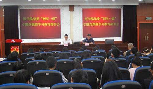 柳书记强调,在“两学一做”学习教育中,一要深刻认识“两学一做”的科学内涵和重要意义;二要准确把握“两学一做”的总体要求,结合学院实际,学要“真走心”,做要“尚行动”;三要在“两学一做”学习教育中要坚持“三个结合”,即:集中辅导和个人自学相结合;理论学习和撰写心得相结合;学习活动和实践教育相结合,提高学习实效。要坚持分类指导,教师党员要做教书育人的领头羊,教工党员要做服务育人、服务社会的先锋,学生党员要做“崇德尚医”的先锋,以切实提高工作实效。要坚持严格党内政治生活,通过召开领导班子专题民主生活会、开好专题组织生活会、组织好民主评议党员、推动“三会一课”常态化、加强党支部建设创新等措施,切实加强支部活动创新。