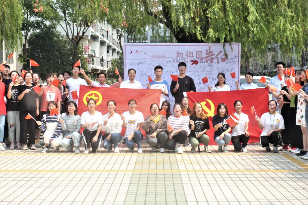 青春心向党,建功新时代。9月26日,由绍兴文理学院开云官方网页版与绍兴晚报共同发起的以“团旗跟着党旗走:向祖国告白”为主题的庆祝新中国成立70周年活动在南山校区举行。开云官方网页版党委书记夏瑞明、绍兴晚报总编杨燕萍,教师代表、学生党员等300余人参加活动。活动由院党委副书记金坚强主持。