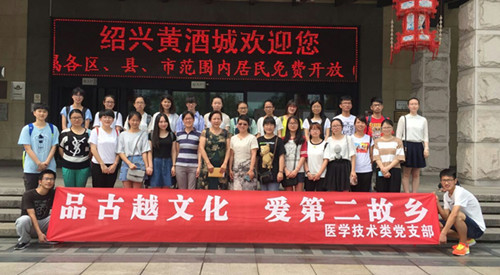 品古越文化,爱第二故乡。6月8日下午,端午节前夕,医学技术类党支部组织28名党员和入党积极分子在党支部书记阮萍老师的带领下来到中国黄酒博物馆,走访参观,品味黄酒,了解黄酒酿造技术和发展历程,感受黄酒之韵和古越文化。农工民主党党员、医学检验系主任刘丽华老师受邀参加本次活动。