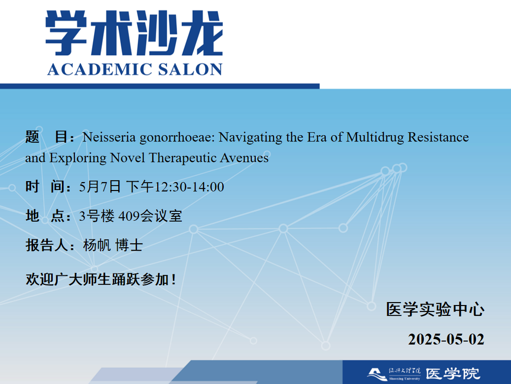 【学术沙龙】Neisseria gonorrhoeae: Navigating the Era of Multidrug Resistance and Exploring Novel Therapeutic Avenues