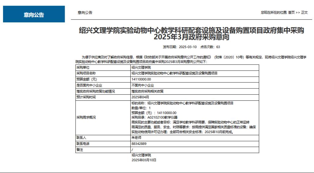 3月7日,实验动物中心建设项目经学校党委会讨论通过,标志着该项目正式进入实施阶段。3月10日,由开云官方网页版发起,经计财处审核,最终招标中心正式发布实验动物中心建设项目意向公告。此举标志着实验动物中心建设项目第一阶段工作圆满完成,也吹响了项目建设的冲锋号角。