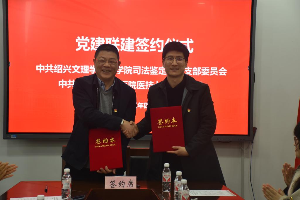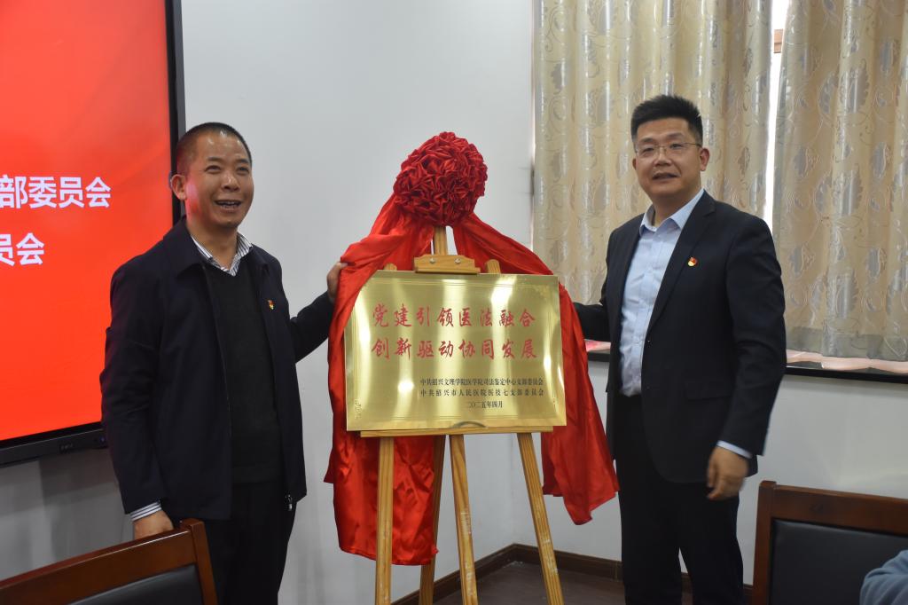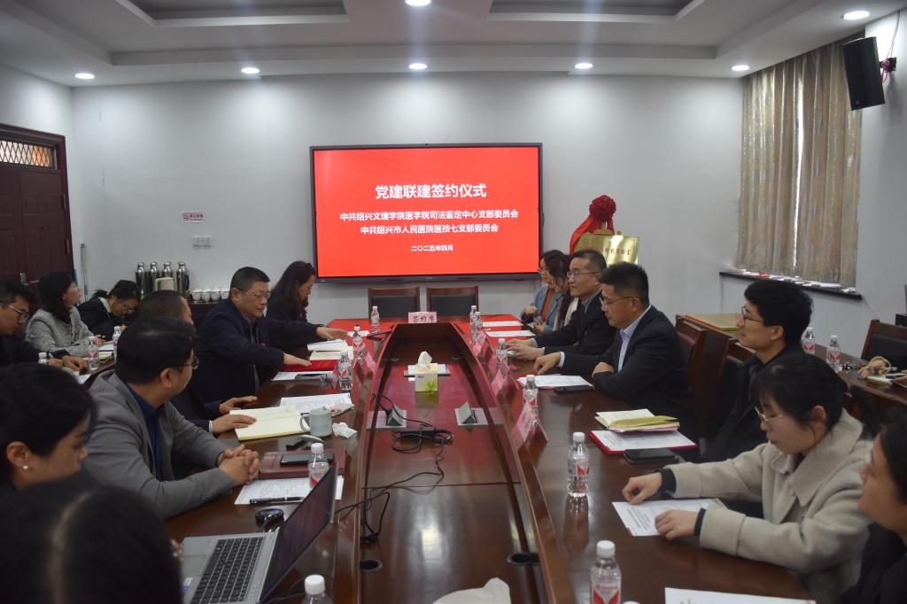 会上,吴剑平与周忠东共同为党建联建揭牌。司法鉴定中心党支部书记葛建荣与医技七支部书记杨成共同签订了党建联建协议,标志着双方合作的正式开启。葛建荣与张宝刚为绍兴市精准科创实验室揭牌,展现了双方在科研合作方面的积极布局。