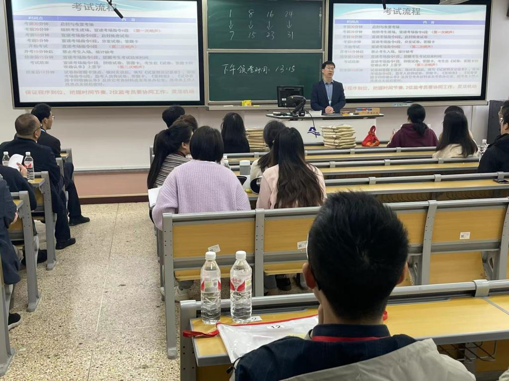 为确保考试平稳有序,教研科以严格考务管理为抓手,投入智能化安检工具和全频段无线电屏蔽仪等先进设备,制定了详细的考务工作方案,并召开考务培训会议,细化岗位职责分工,明确操作流程,对考试流程、考风考纪、保密管理、后勤保障等工作进行重点强调,确保培训到位,落实到位。