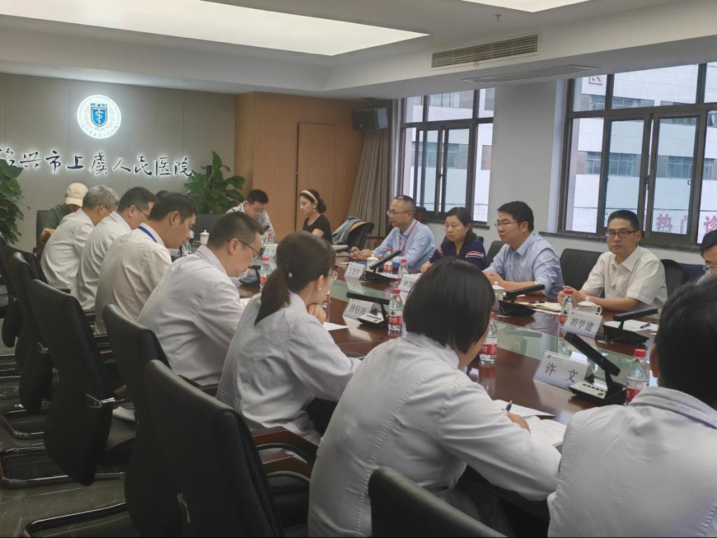 活动首站,调研团队来到校附属上虞医院。学院副院长、校附属上虞医院党委书记龚月江,党委委员、副院长章鲁艇,副院长徐钰祥、党委委员何小平及相关科室负责人对学院一行来访表示欢迎。座谈会上,双方围绕医学人才培养、实习就业联动和科研项目合作等开展交流。