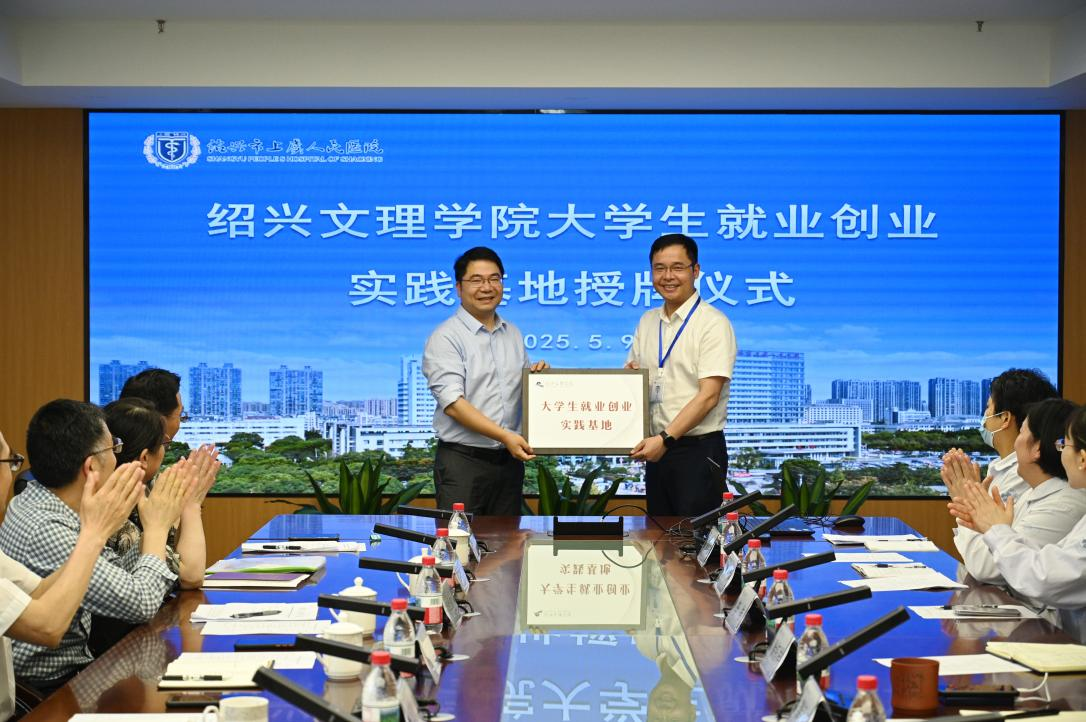 林国旗指出,校附属上虞医院作为绍兴东部地区重要的医疗中心,为学院学生提供了丰富的临床教学资源和实践机会。现场举行了“大学生就业创业实践基地”授牌仪式,此举标志着双方将围绕实习实训、创新创业、就业指导等领域开展深度合作,助力医学生职业能力提升与高质量就业。