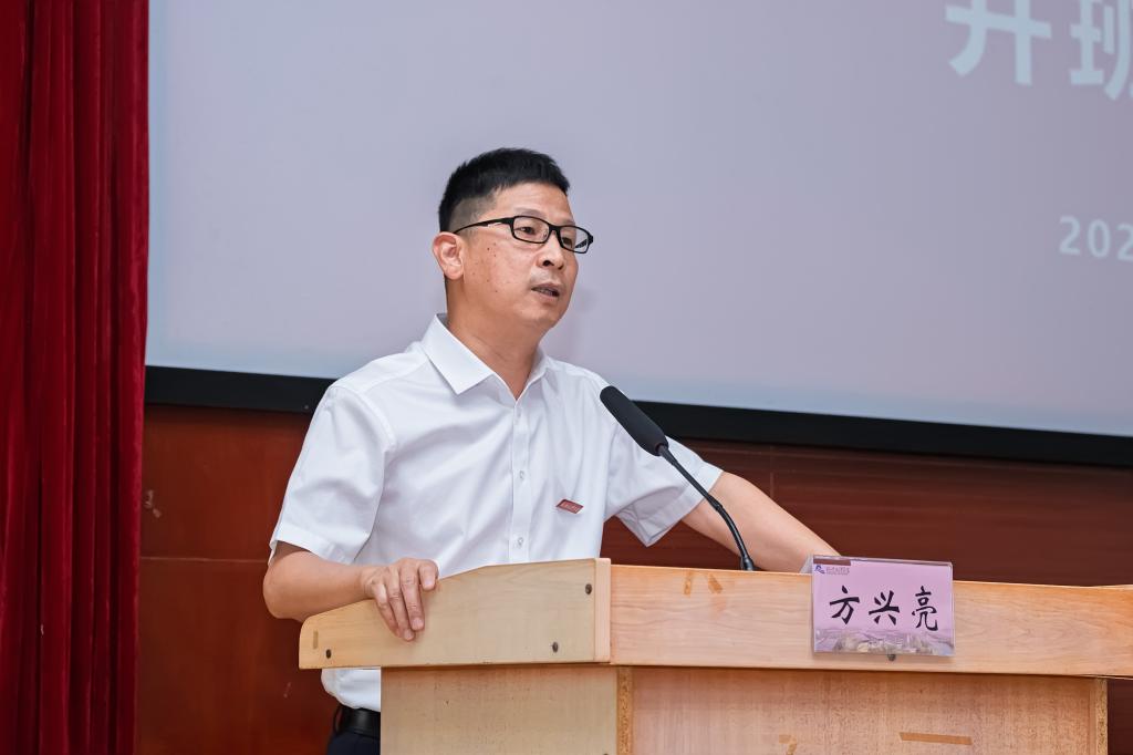 学院院长方兴亮发表讲话。他对新生的到来表示衷心的祝贺和热烈的欢迎。他希望同学们能以信仰为基深耕厚植,系紧医者生涯 “第一颗扣子”,恪守科学精神,细品探寻科学真谛的探索之乐,弘扬美善,成为兼修仁心仁术的新一代医生。