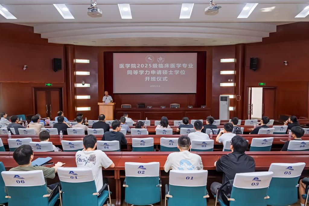 9月6日,2025级临床医学专业同等学力申请硕士学位学员开班仪式在南山校区7号楼报告厅举行。学院领导、全体2025级临床医学专业同等学力申请硕士学位学员参加会议。会议由学院党委书记吴剑平主持。